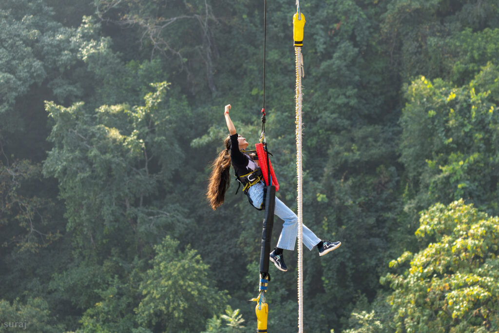 freestyle bungee jumping in Jim Corbett lets you choose your style. Add a backflip, spin, or dive, and make every jump unique. It’s not just about the fall—it’s about enjoying nature, the wind rushing past, and the joy of testing your courage.